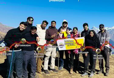 The Dayara Bugyal 3N/4D trek takes you through beautiful forests and vast alpine meadows, offering stunning Himalayan views and a peaceful mountain experience